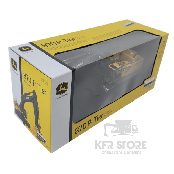 La miniatura ERTL de la excavadora John Deere 870 P-Tier es una réplica a escala 1/50 de alta calidad. Cuenta con detalles precisos de la máquina original, incluida la cabina con asientos y controles, brazos articulados, orugas de goma y una pluma que se puede subir y bajar. El modelo está fabricado con materiales duraderos y es ideal para coleccionistas o para jugar.